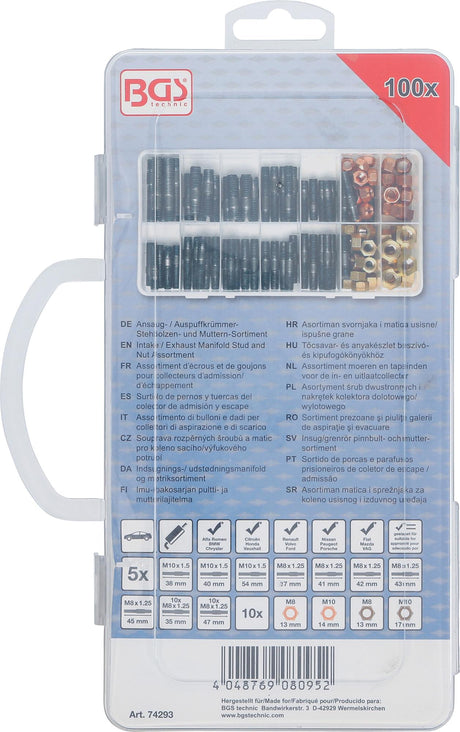 Įsiurbimo / išmetimo kolektoriaus smeigių ir veržlių asortimentas | 100 vnt. (74293)