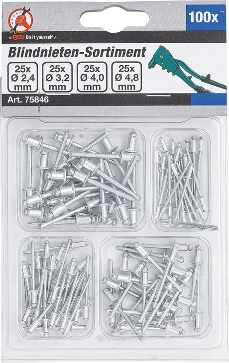 Kniedžių asortimentas | Ø 2.4 - 4.8 mm | 100 vnt. (75846)