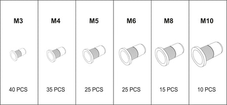 Srieginės kniedės | plieninės | M3-M10 | 150 vnt. (SK01099)