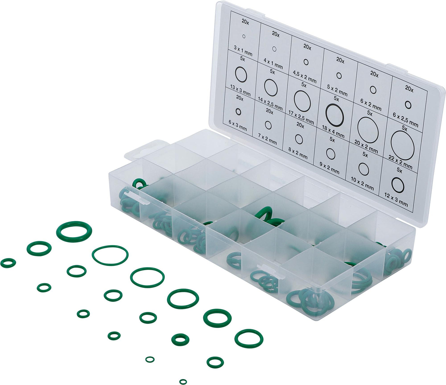 Manžetų rinkinys kondicionieriams HNBR | Ø 3 - 22 mm | 225 vnt. (8121) yra užsakomoji prekė, ją išsiųsime per 3-4 savaites.
