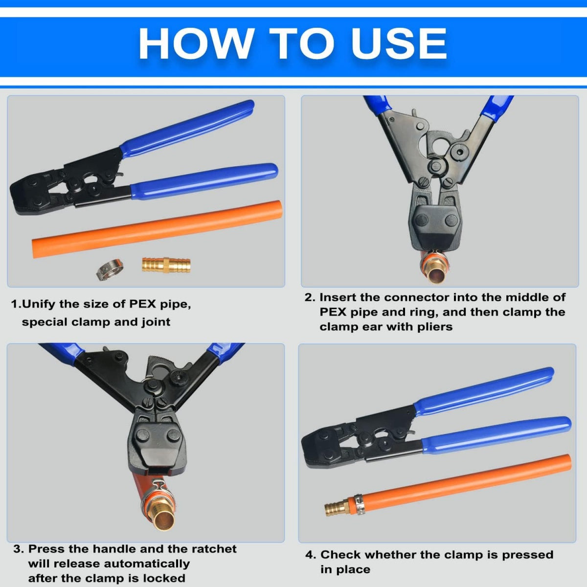 Nerūdijančio plieno sąvaržų užspaudimo replės | PEX CINCH | su rinkiniu (CH31)