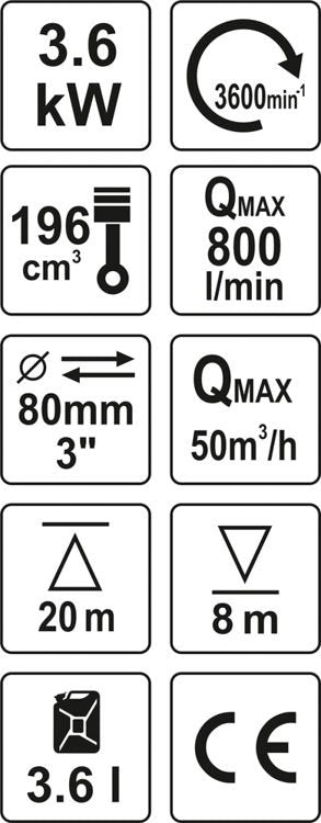 Benzininis vandens siurblys YATO YT-85402 - tai patikimas PRO klasės įrankis, skirtas siurbti didelius vandens kiekius visur, kur nėra galimybės prisijungti prie elektros tinklo. Tinkamas darbams po gedimų ar stichinių nelaimių. Siurblys įmontuotas į plieninį rėmą, kuris apsaugo prietaisą nuo pažeidimų ir palengvina transportavimą. Benzininis vandens siurblys YATO YT-85402 varomas keturtakčiu 1 cilindro oru aušinamu DJ170F tipo vidaus degimo varikliu.