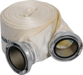 Hose with a diameter of 3 "designed for cooperation with a motor pump Aluminum connection tips Hoses made of high quality white polyester silk, characterized by lightness and elasticity, resistance to weather conditions.The hose is mainly used for cooperation with combustion pumps, for draining water from flooded areas, rooms, manholes or excavations.