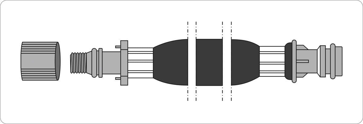 hose equipped with 2 couplings, both for connection with quick coupler. Tip with a nut on one side. Screwed nut - closing the system, unscrewed - continuation of the system.