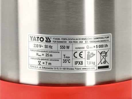 Lietaus vandens siurblys | su plūde | MULTI INOX 550 | automatinis išjungimas (YT-85287)
