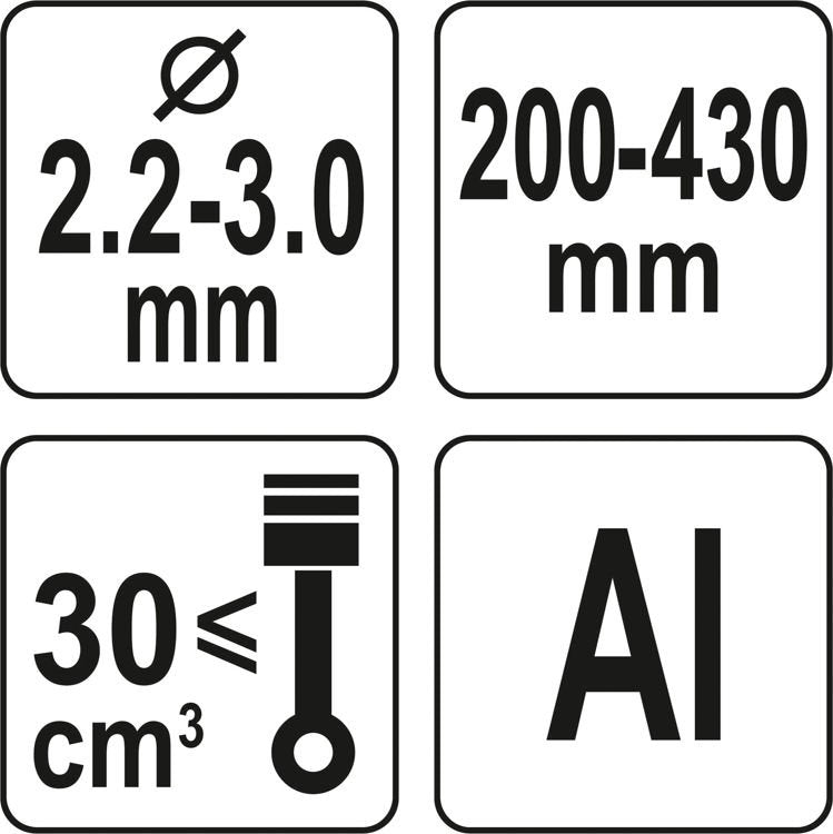 can be used with lines of diameter of 2-3 mm and length of 300-430 mm