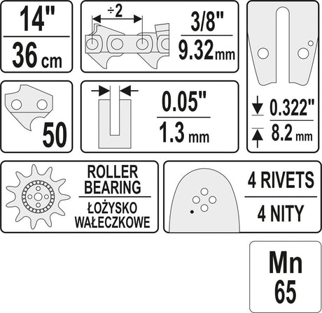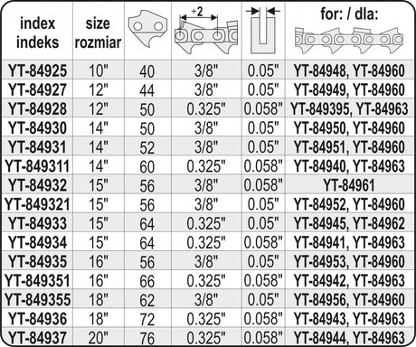 Grandinė pjūklui | 0.325" 14" 60 0.058" (YT-849405)