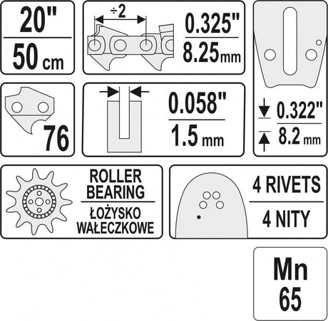 Grandinė pjūklui | 0.325" 20" 78 0.058" (YT-849441)
