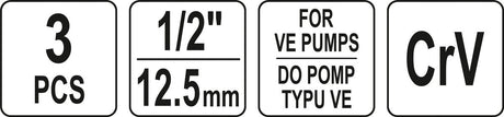 Galvutės įpurškimo siurbliams 3-kampų, 7 ir 12.6 mm (SN1605)