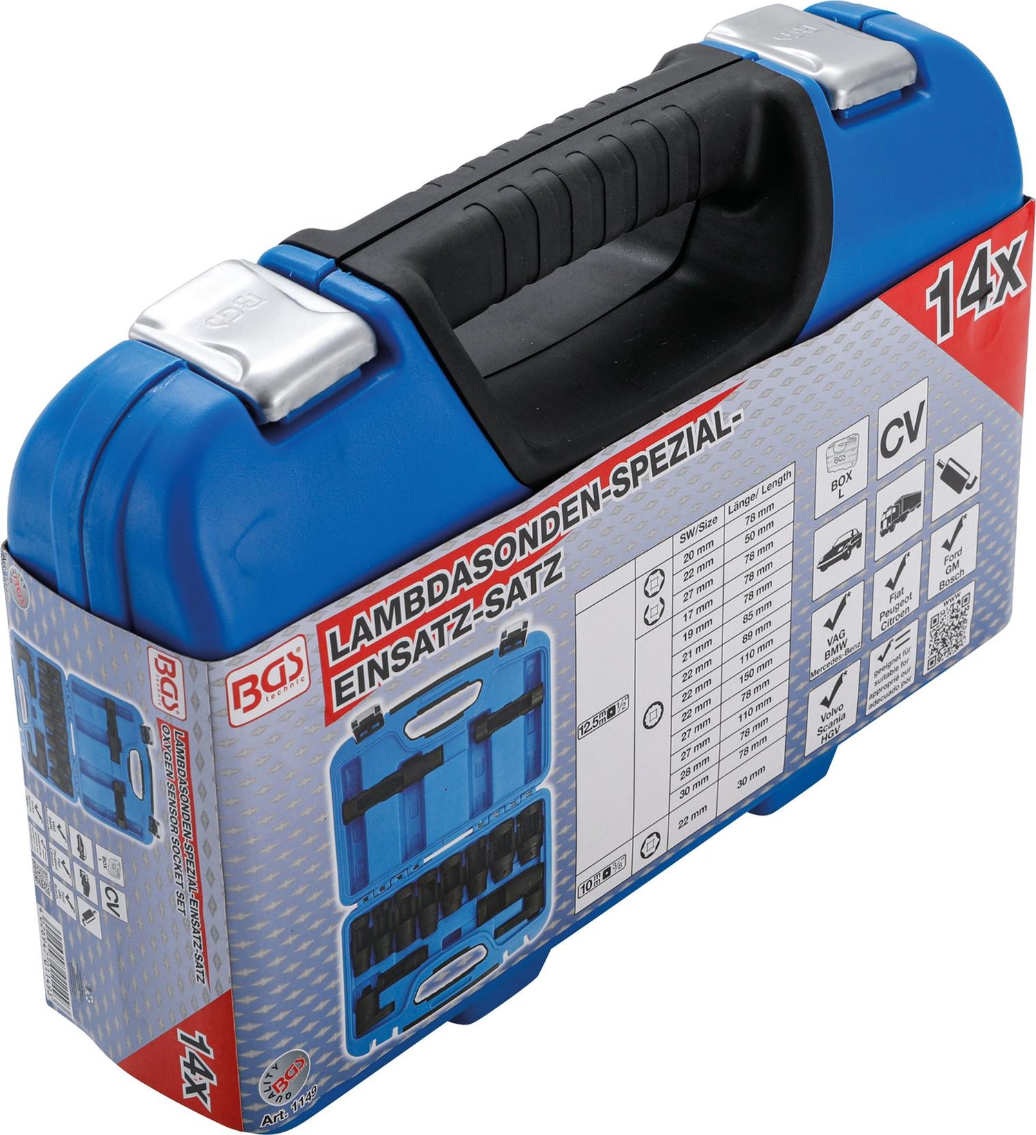 oxygen sensor socket, 12,5 mm (1/2") drive, 22 mm, 12-point, length 110 mm: for Audi, BMW, Mercedes-Benz, VW, Volvo