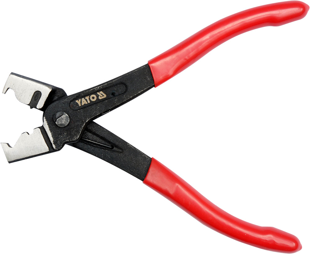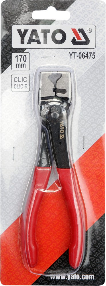 Professional Clic Clic and Clic-R clamping tongs. They are used to disassemble reel clips on rubber hoses used in the brands VW, AUDI, CITROEN, FIAT, MERCEDES, OPEL, PEUGEOT, RENAULT. Jaws made by forging - then ground. This gives them a very strong construction. For the convenience of use, a spreading spring was used and the handle was covered with a PVC cover.
