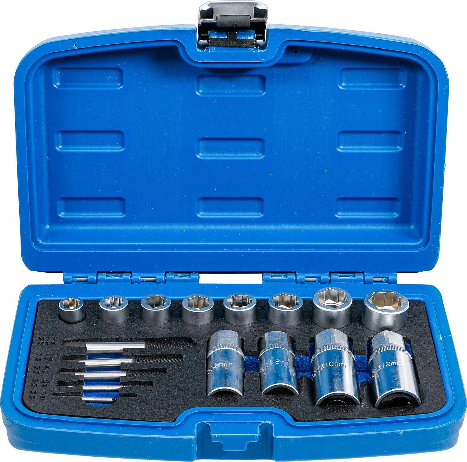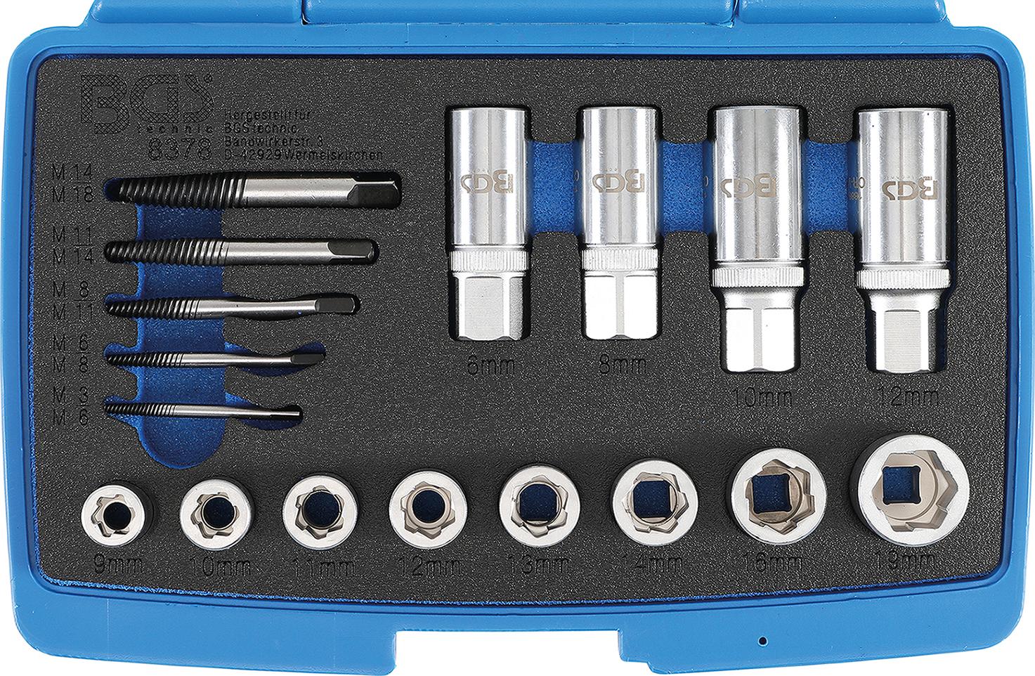 8 special sockets for loosening rounded off hexagon nuts 9 - 10 - 11 - 12 - 13 - 14 - 16 - 19 mm (also used to tighten screws)