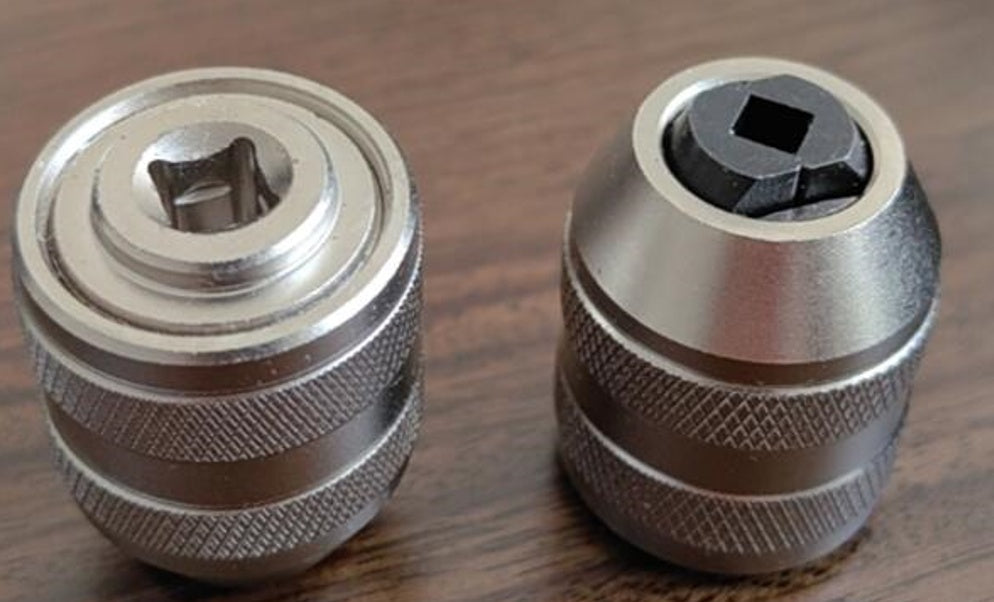 This interchangeable tap chuck adaptor can be used with any 1/4'' drive manual wrenches and ratchets.