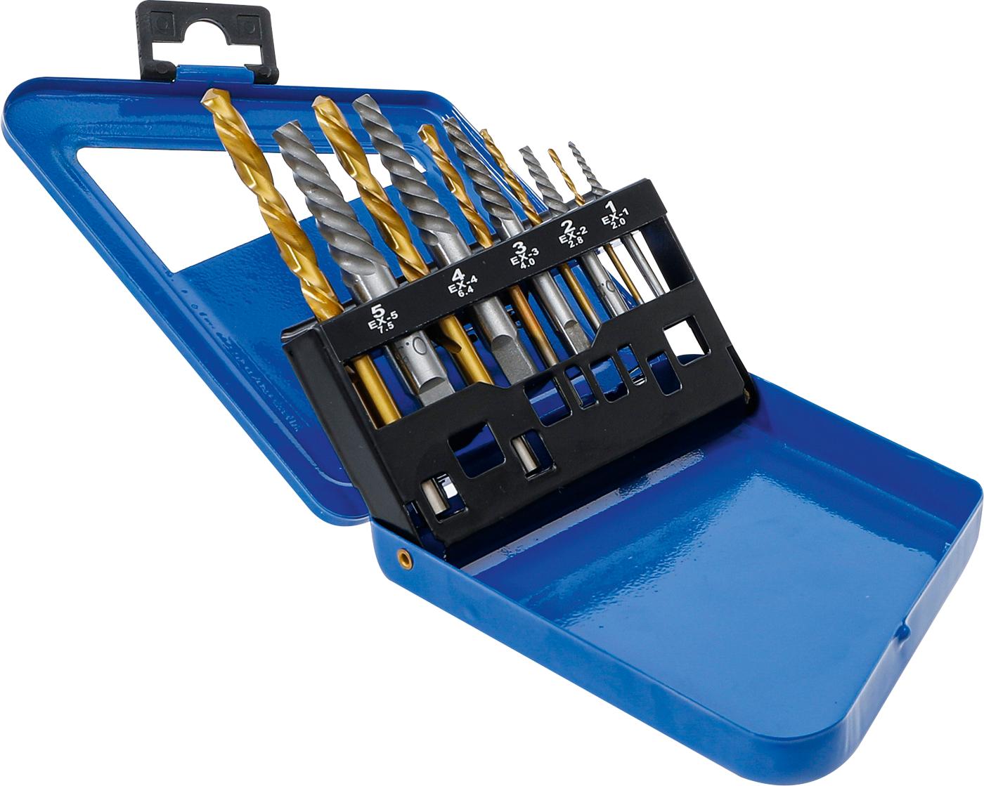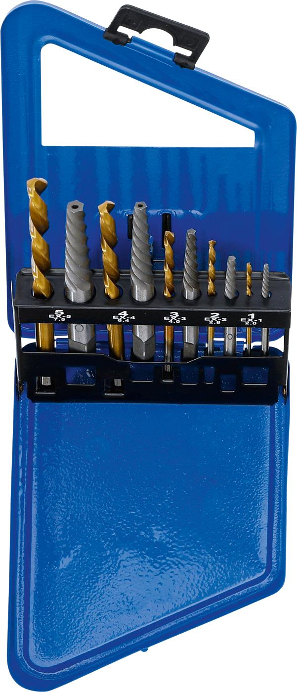 Užlūžusių varžtų išsukėjų ir kairinių grąžtų rinkinys | HSS | titano nitridas | 2 - 7.5 mm | 10 vnt. (6780)