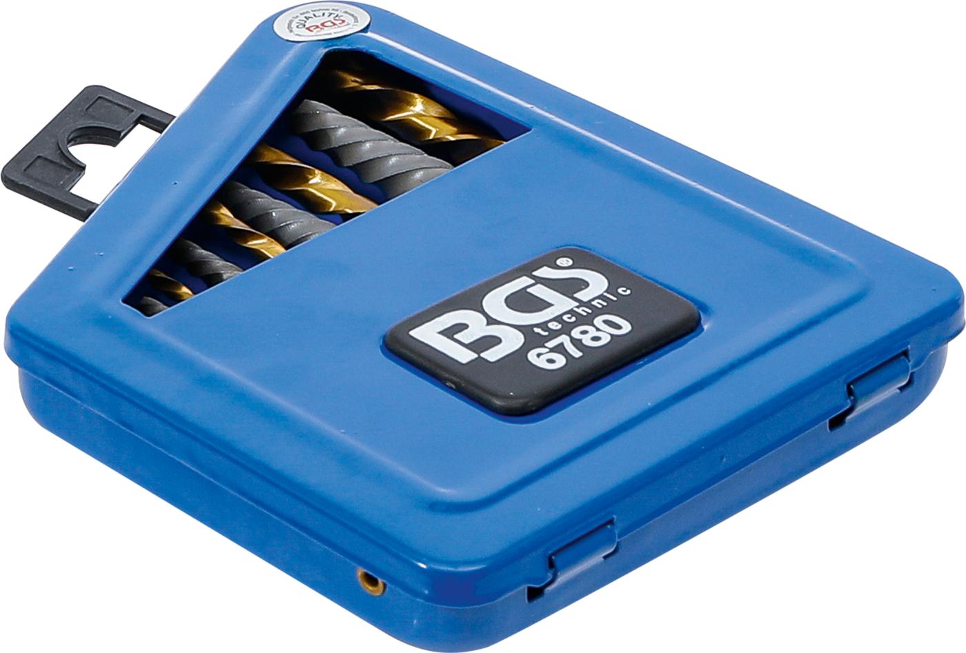 Užlūžusių varžtų išsukėjų ir kairinių grąžtų rinkinys | HSS | titano nitridas | 2 - 7.5 mm | 10 vnt. (6780) yra užsakomoji prekė, ją išsiųsime per 3-4 savaites.
