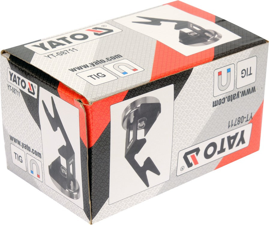 Stand for a TIG welding torch. Made of 2.5 mm thick steel with a solid and strong ferrite magnet at the base. Powder coated surface.