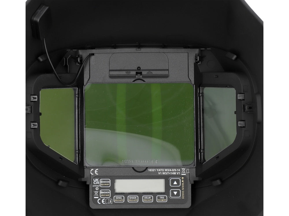 the TEST button allows you to check the correct operation of the self-darkening function. TEST in digital filters of YATO welding helmets starts the procedure of testing each degree of darkening. The routine of checking the correct operation of the filter each time will help protect the eyes and health of the operator.