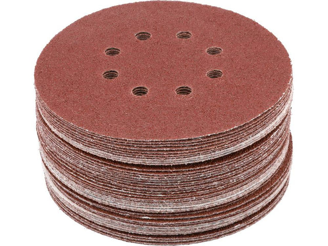 8 HOLES, 150MM DIAMETER, 40 GRIT, MATERIAL: ALUMINUM OXIDE, BACK: HOOK FASTENER, 50 PCS, BOND: EPOXY RESIN, COAT: SEMI-OPEN. ABRASIVE DISCS WITH SIX HOLES ARE INTENDED FOR SANDING PAINT, VARNISH, WOODEN AND METAL SURFACES. COOPERATING WITH OSCILLATING AND ERC-CENTRICAL SANDERS YT-82207, YT-82206