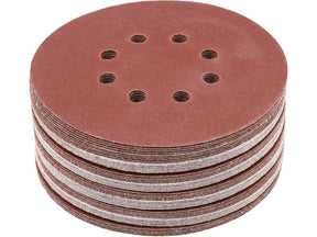 8 HOLES, 150MM DIAMETER, 80 GRIT, MATERIAL: ALUMINUM OXIDE, BACK: HOOK FASTENER, 50 PCS, BOND: EPOXY RESIN, COAT: SEMI-OPEN. ABRASIVE DISCS WITH SIX HOLES ARE INTENDED FOR SANDING PAINT, VARNISH, WOODEN AND METAL SURFACES. COOPERATING WITH OSCILLATING AND ERC-CENTRICAL SANDERS YT-82207, YT-82206