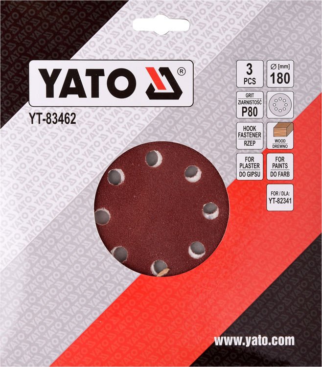 Šlifavimo popierius {velcro) apvalus | su skylėm | 180 mm / P80 | 3 vnt. (YT-83462)