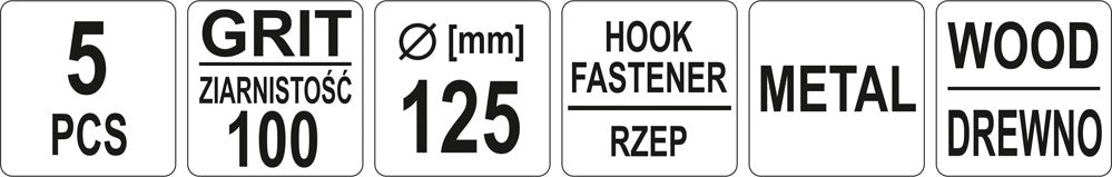 Švitrinis popierius prilimpantis 125mm (Velcro) 5 vnt/pak. P100 (YT-83434)