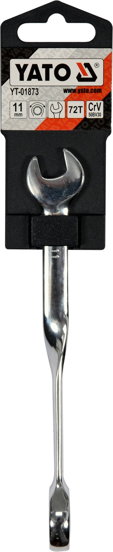 Raktas lenktas C formos terkšlinis, su reversu, 72 dantukų 10x11 mm (YT-0283)
