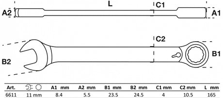 Kombinuotas raktas su terkšle | su reversu | 11 mm (6611)