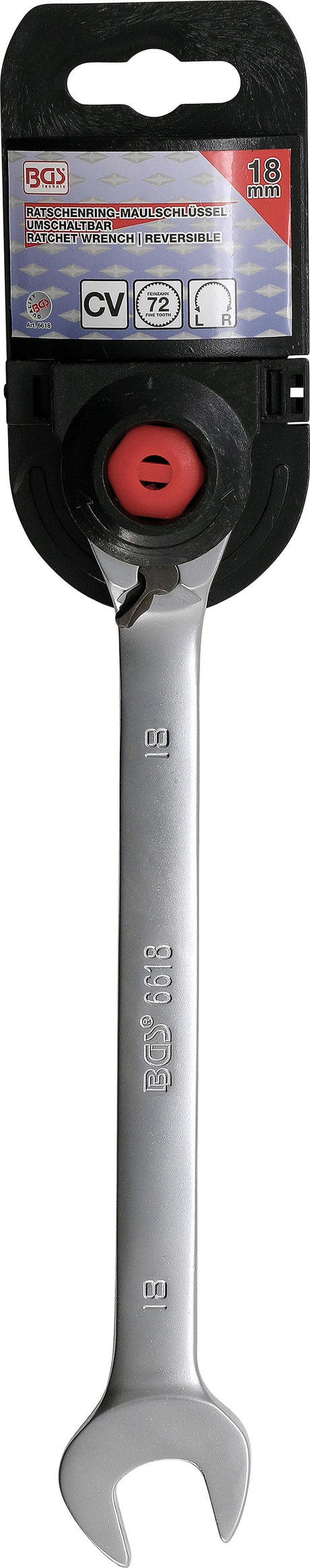 Kombinuotas raktas su terkšle | su reversu | 18 mm (6618)