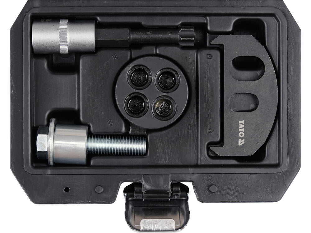 Set of 4 specialized tools for handling the crankshaft in BMW cars. Fits all types of engines. Allows for precise setting of the crankshaft and immobilization of the flywheel during work related to the timing system or other service activities.