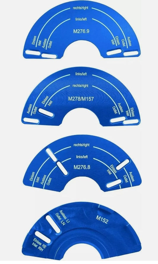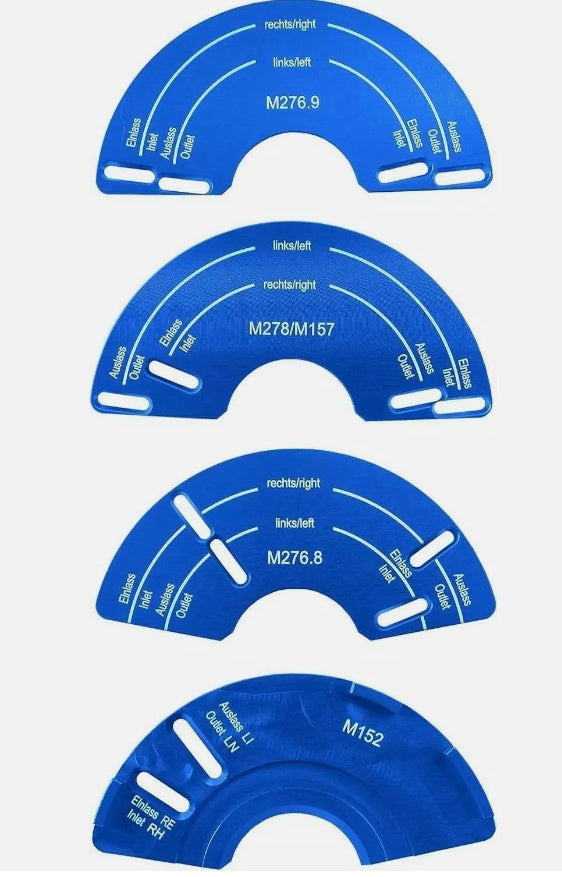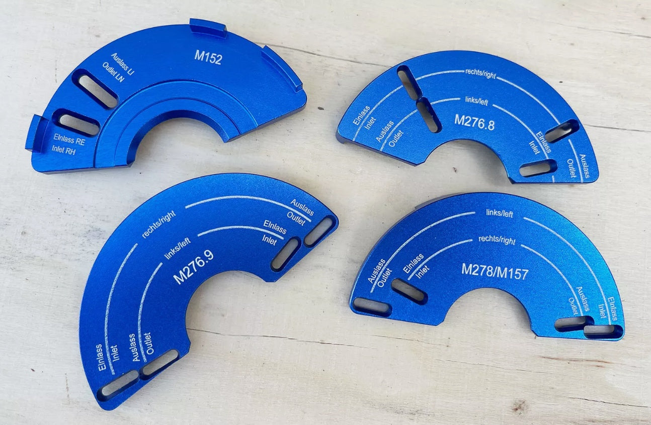 Kiekviena kvadranto plokštelė žymi teisingas išmetimo (Auspuff) ir įsiurbimo (Einlass) vožtuvų padėtis tiek dešinėje (rechts), tiek kairėje (links) variklio pusėse.