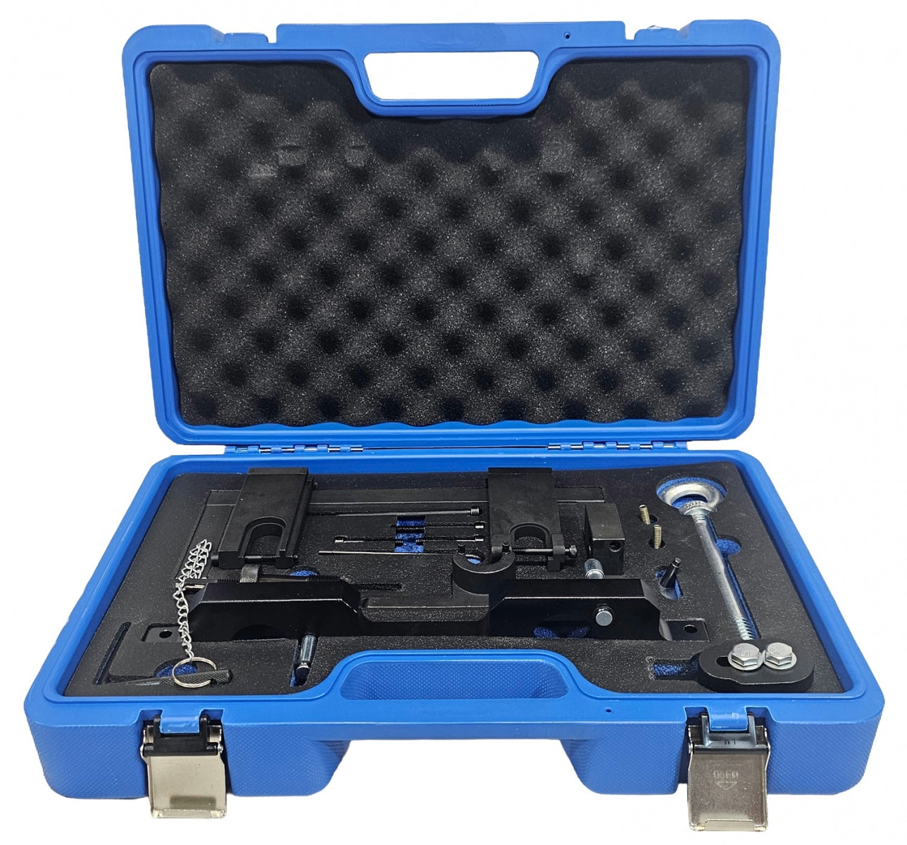 This tool kit includes camshaft timing tool, flywheel holder tool, balance shaft tool, fuel injector remove tool and engine lifting hook. This set has more tools than other tool sets, has more comprehensive functions, and it can meet your more different needs, make your work more convenient..
