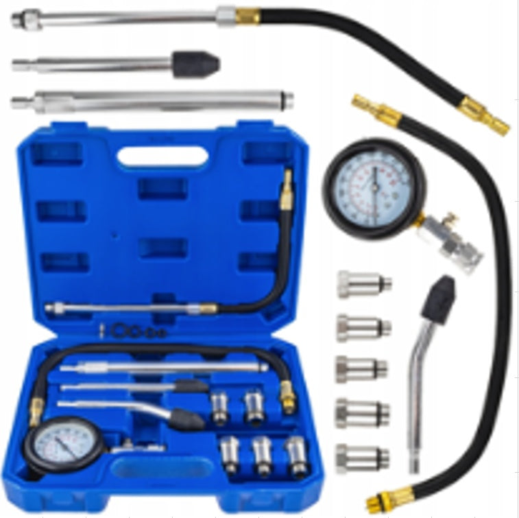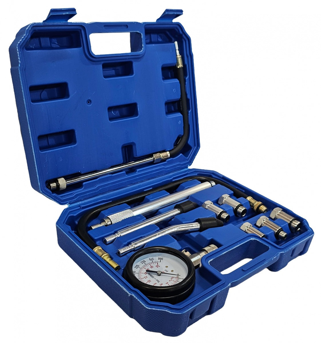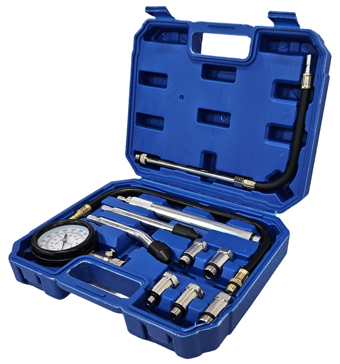 Kompresijos matuoklis benzininis | su pailgintais adapteriais | 0-20 bar (H06009)