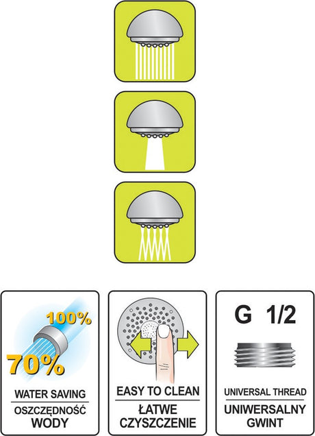 Dušo galvutė 3-jų funkcijų, žalia "Salto green" (75620)