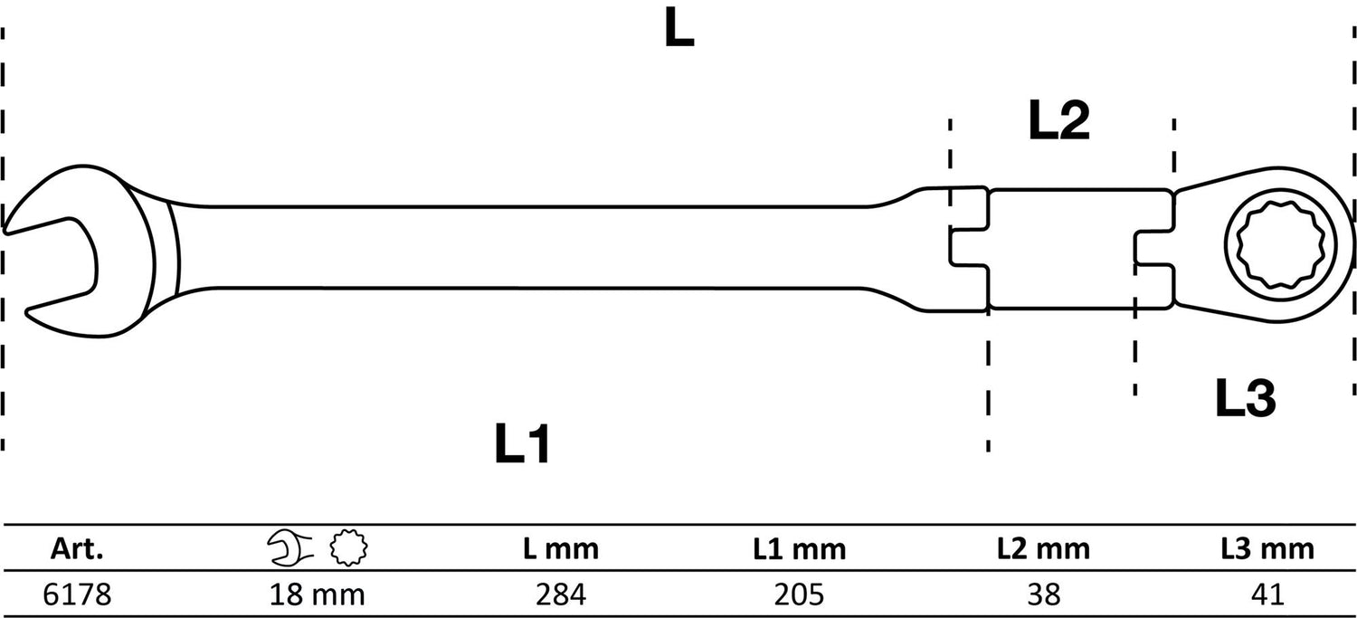 Kombinuotas raktas su terkšle | dvigubas šarnyras | 18 mm (6178)