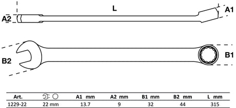 Raktas kombinuotas | ilgas tipas | 22 mm (1229-22)