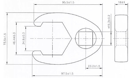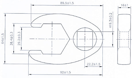 Raktas kilpinis dvipusis tiesus plokščias | 21 x 23 mm (30340B)