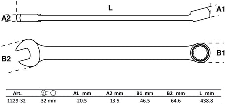 Raktas kombinuotas | ilgas tipas | 32 mm (1229-32)