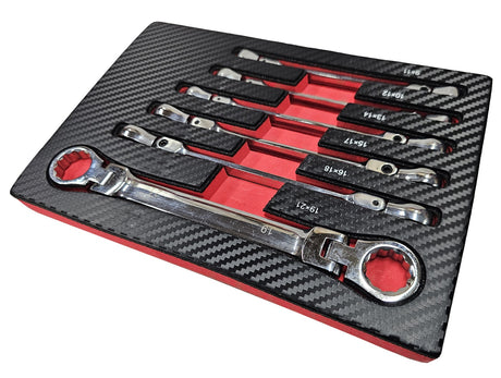 Įrankių dėklas 2/3: Veržliarakčių rinkinys su šoniniais raktais | Coliniai dydžiai | 14 vnt. (74564)