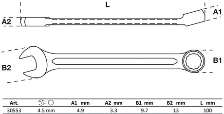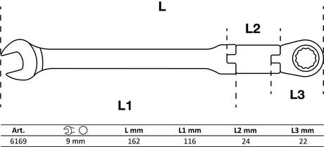 Kombinuotas raktas su terkšle | dvigubas šarnyras | 9 mm (6169)