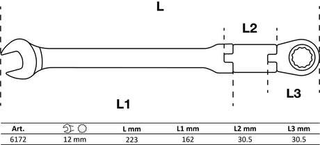 Kombinuotas raktas su terkšle | dvigubas šarnyras | 12 mm (6172)
