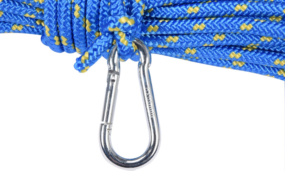 Kaminkrečio virvė | pinta | 6 mm x 10 m | su karabinu (73021) yra užsakomoji prekė, ją išsiųsime per 3-4 savaites.