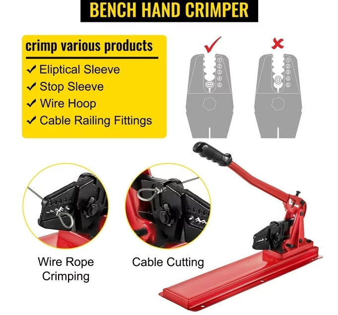 Efficient Crimping & Shearing: Our rope crimper with five crimping positions and a hardened side cutter, excellent for crimping wires. This cable cutter makes precise and clean cuts without fraying the ends.