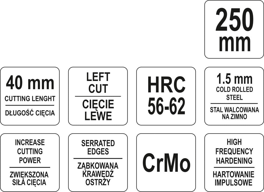 Žirklės skardai | kairinės | CrM | 250 mm (YT-1960) yra užsakomoji prekė, ją išsiųsime per 3-4 savaites.