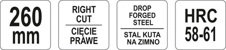 Žirklės skardai dešininės | 260 mm (YT-1901)