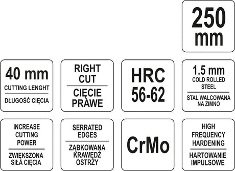 Žirklės skardai | dešininės | CrM | 250 mm (YT-1961)