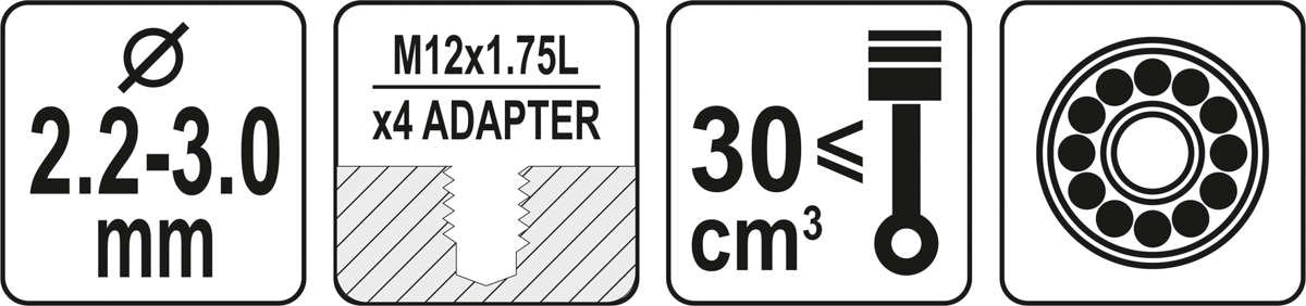 M12 x 1.75 thread, 4 adapters included: M12 x 1.5, M10 x 1, M10 x 1.25, M10 x 1.5