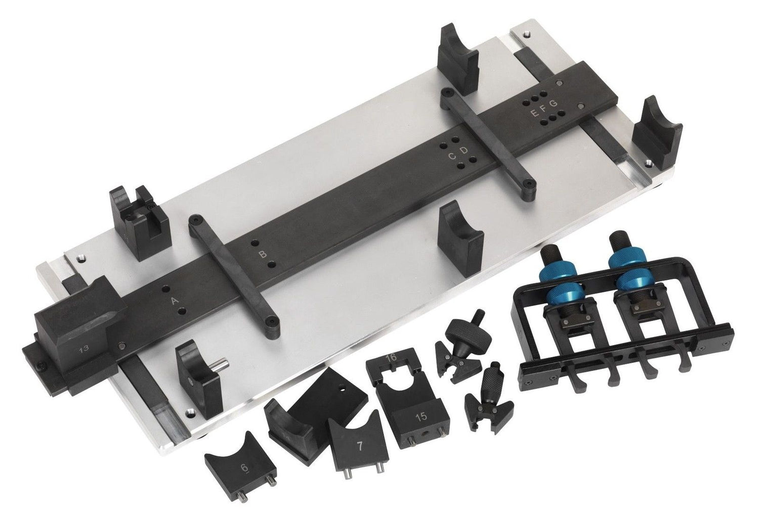 Šis paskirstymo veleno montavimo rinkinys skirtas naudoti VAG ir Porsche Common Rail dyzeliniuose varikliuose su paskirstymo diržo arba grandinės pavara. Jis tinka 1.2, 1.6, 2.0, 2.7, 3.0, 4.0 ir 4.2 litro varikliams, kuriuose vienas paskirstymo velenas yra varomas diržu arba grandine, o antrasis paskirstymo velenas sujungtas per tarpusavyje sujungtus spyruoklinius krumpliaračius. Rinkinys suteikia būtinus įrankius teisingam abiejų paskirstymo velenų centravimui vienas kito atžvilgiu ir paskirstymo veleno laikiklio atžvilgiu variklio surinkimo ar paskirstymo nustatymo metu.