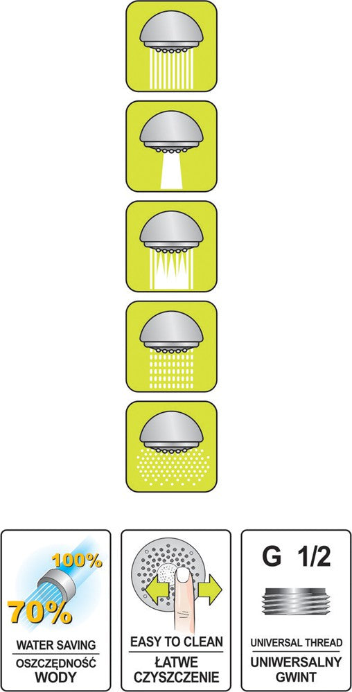 Dušo galvutė 5 funkcijų, chromuota, "Detifos" (75625)