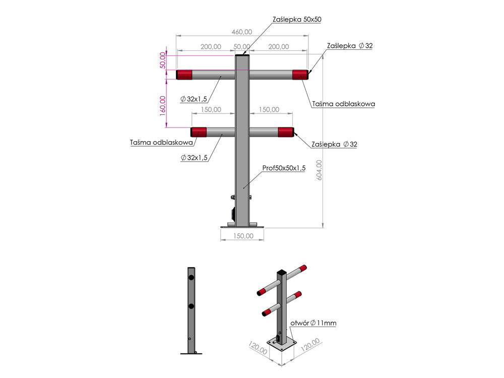 Folding parking lock "Christmas tree" with a lock to effectively secure spaces against unauthorized entry or parking of vehicles. Provides convenience and safety in managing access to designated areas. Allows temporary blocking of parking spaces or entry, e.g. to private property, pedestrian and vehicle routes, green areas, flood embankments, promenades.