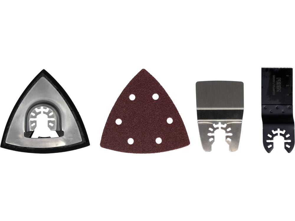 A versatile tool that allows you to easily and safely cut wood and metal, plunge cut, scrape, as well as sand surfaces. Accessory replacement is tool-free thanks to the safety lock. The popular half-moon type of blade is used, and the set includes cutting blades and a sanding pad with spare sandpapers.
